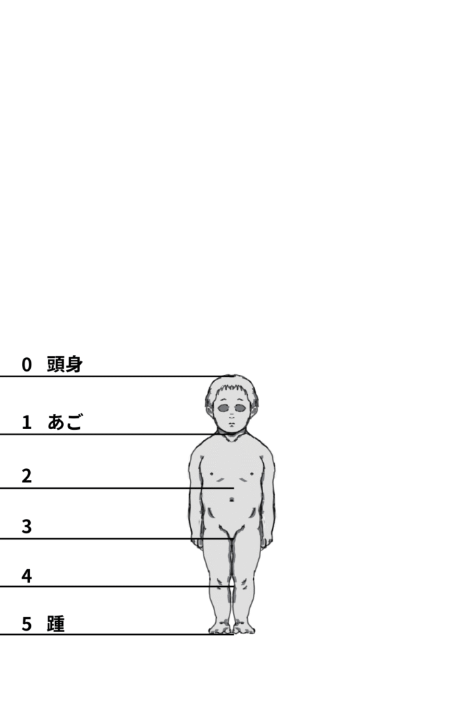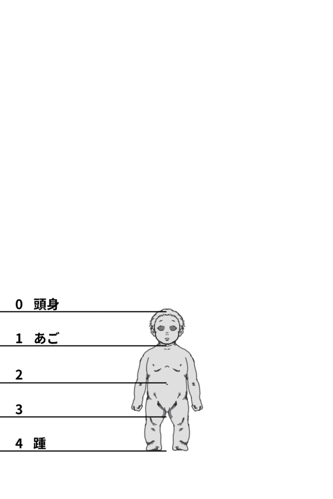 最後に年齢別のプロポーションについて見ていきましょう。子供の頭身がどのような割合になっているのかを参考にします。