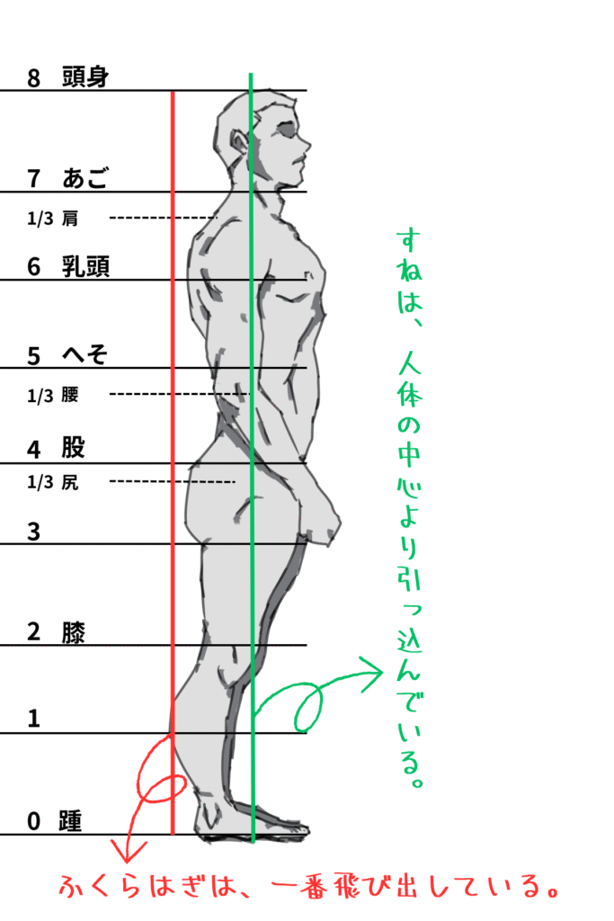 この理想的プロポーションを横から見ると、足の部分で注意するべき特徴があります。