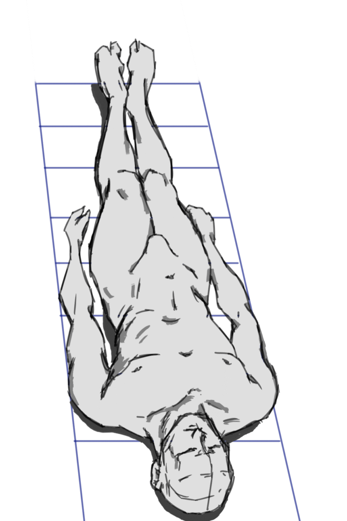 ただ、この場合は真っ直ぐ正面から見た状態であるため、人体の角度が変われば平面図も傾ける必要があります。