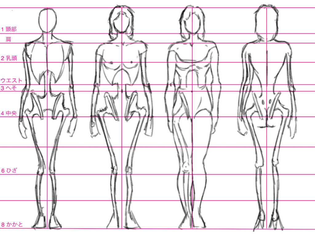 女性のプロポーションは、3等分してプロポーションを捉える方法が簡単。